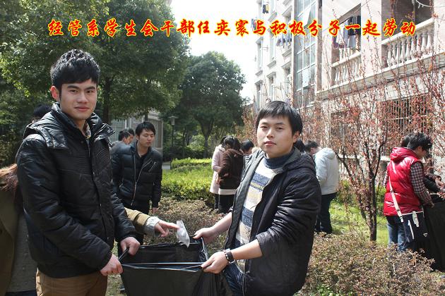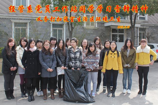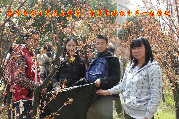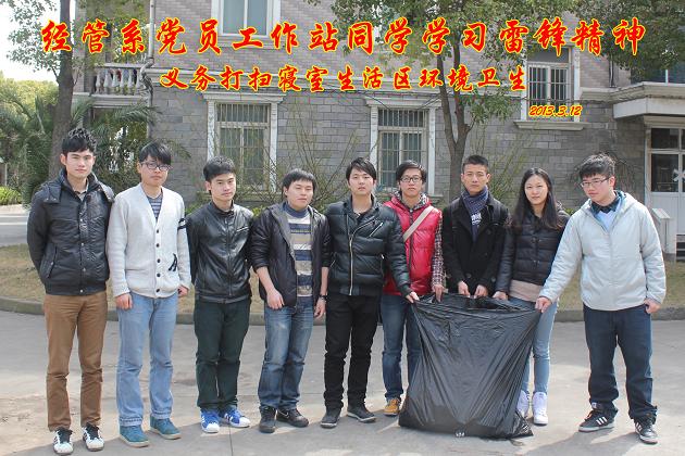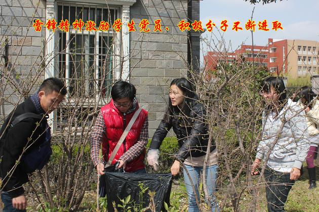 | 今年3月5日是毛择东主席发表“向雷锋同志学习”的题词第50个纪念日,经管系党总支组织党员工作站全体党员、高级党校入党积极分子开展学雷锋义务劳动活动 。3月14日下午,系党员工作站的全体学生党员、积极分子怀着向雷锋学习的奉献精神在寝室生活区集合,进行义务清扫生活区环境卫生。 在义务劳动中,同学们明确分工,分成若干小组对宿舍外围场所的垃圾等进行了认真的打扫。同学们不怕脏不怕累,齐心协力,分工合作、配合默契,充分体现“团结、友爱、互助、奉献”的雷锋精神,枯枝烂叶,纸屑、饮料瓶在同学们的汗珠凝聚中消失了,经过近一个多小时的努力,终于将生活区的外围环境卫生清理干净。同学们的脸上也露出了甜蜜的笑容,宿舍外围环境顿时更加干净了许多。同学们的表现获得了住宿同学的一致好评。这次活动体现了经管系学生党员、积极分子学习雷锋精神的热情和积极性,有力培养了学生们的团队精神,也增加了同学们对雷锋精神内涵的认识。系党总支、党员工作站将自始至终地坚持开展学雷锋活动,让每一位同学都投入到学习雷锋的活动中,使雷锋精神代代相传。 |