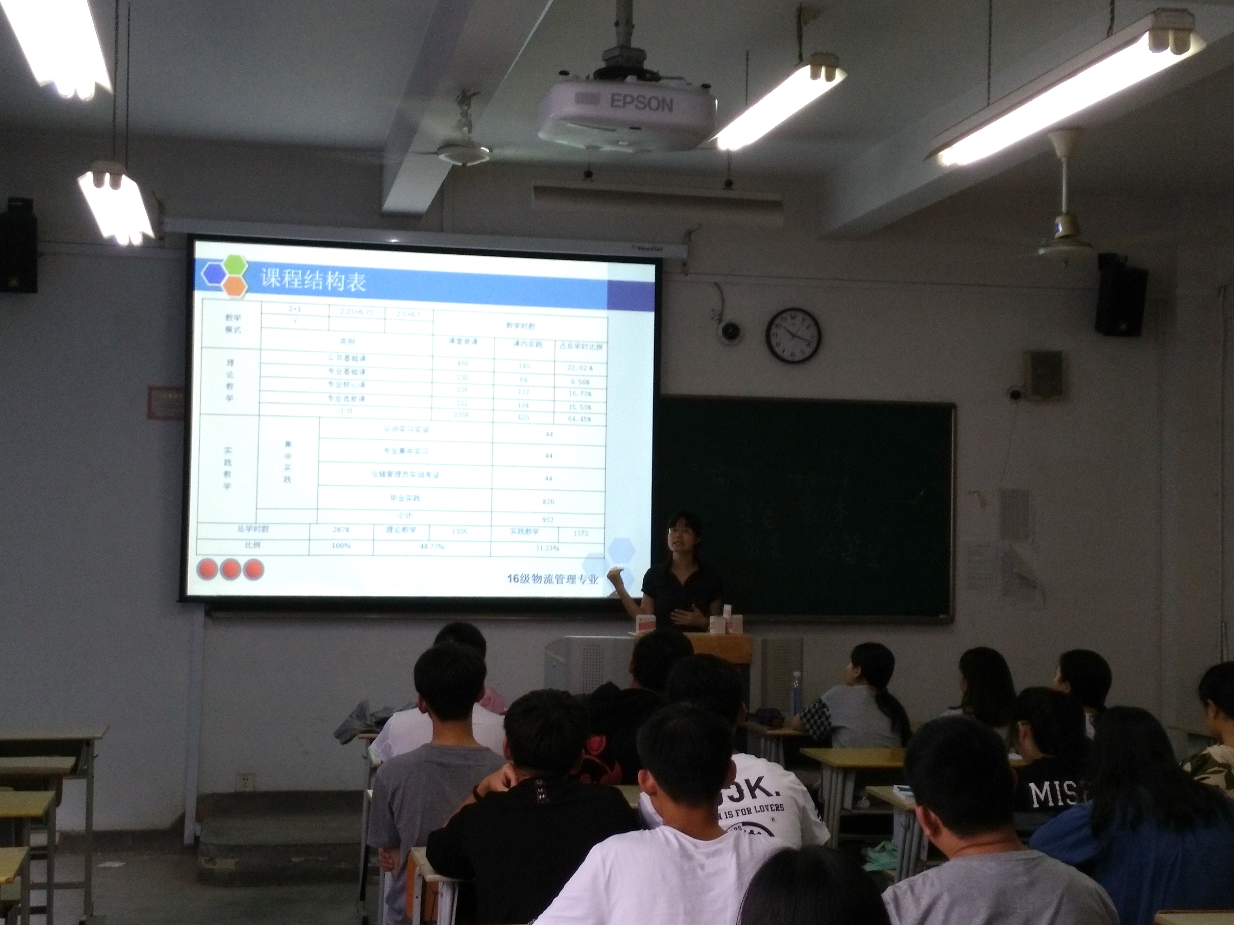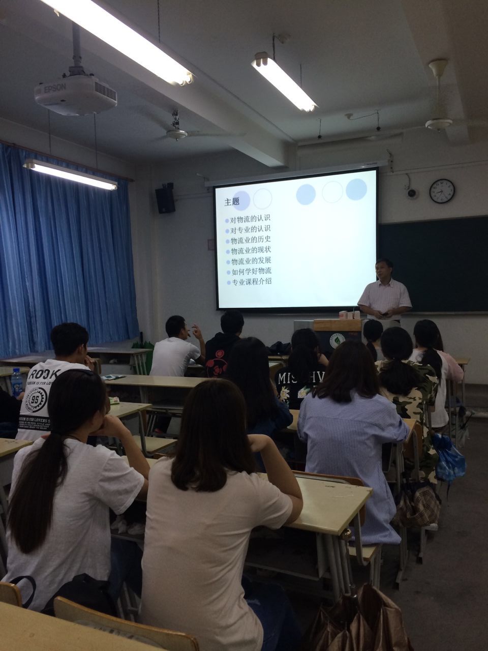 9月14日上午,上海济光职业技术学院经管系物流管理专业特聘教授江少文老师以及专业主任宁苗苗老师组织16级物流管理专业同学开展了物流管理专业的介绍活动。江老师为同学们详细介绍了物流行业和物流专业,探讨了要从思想和知识等多个层面来努力学好物流。宁苗苗老师则介绍了物流专业的培养方案,同学们学习和毕业的要求,和同学们分享了人生的感悟,提出了期待和希望。