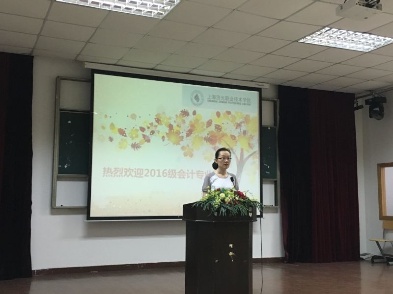 2016年9月14日上午,在学院第一阶梯教室2016级会计专业共194名新生齐聚一堂,由会计专业主任尤立老师代表会计专业的全体老师向全体新生表达了真挚的欢迎,并简单的给同学们介绍了会计专业的专业特色、校企合作单位以及课程体系。重点介绍了会计专业的双层次多方向的培养特色,以及“岗课赛证”一体的教学特色。通过这次介绍,同学们对未来三年的理论及实践学习有了初步的认知,对三年后的职业岗位生涯有了一定的设想。