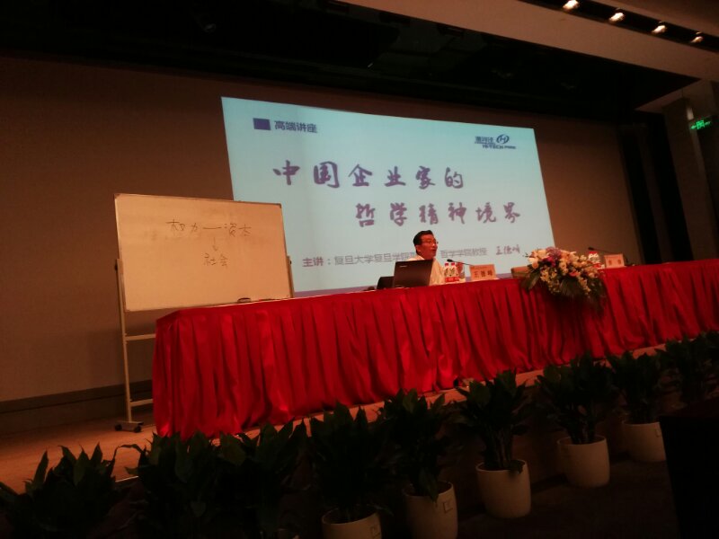 为了进一步丰富校园文化生活,推动我院创新创业人才培养, 2016年10月21日下午,经管系组织44名同学参加了由漕河泾新兴技术开发区人才发展培训中心举办,复旦大学教授、博士生导师王德峰主讲的《中国企业家的哲学精神境界》报告。