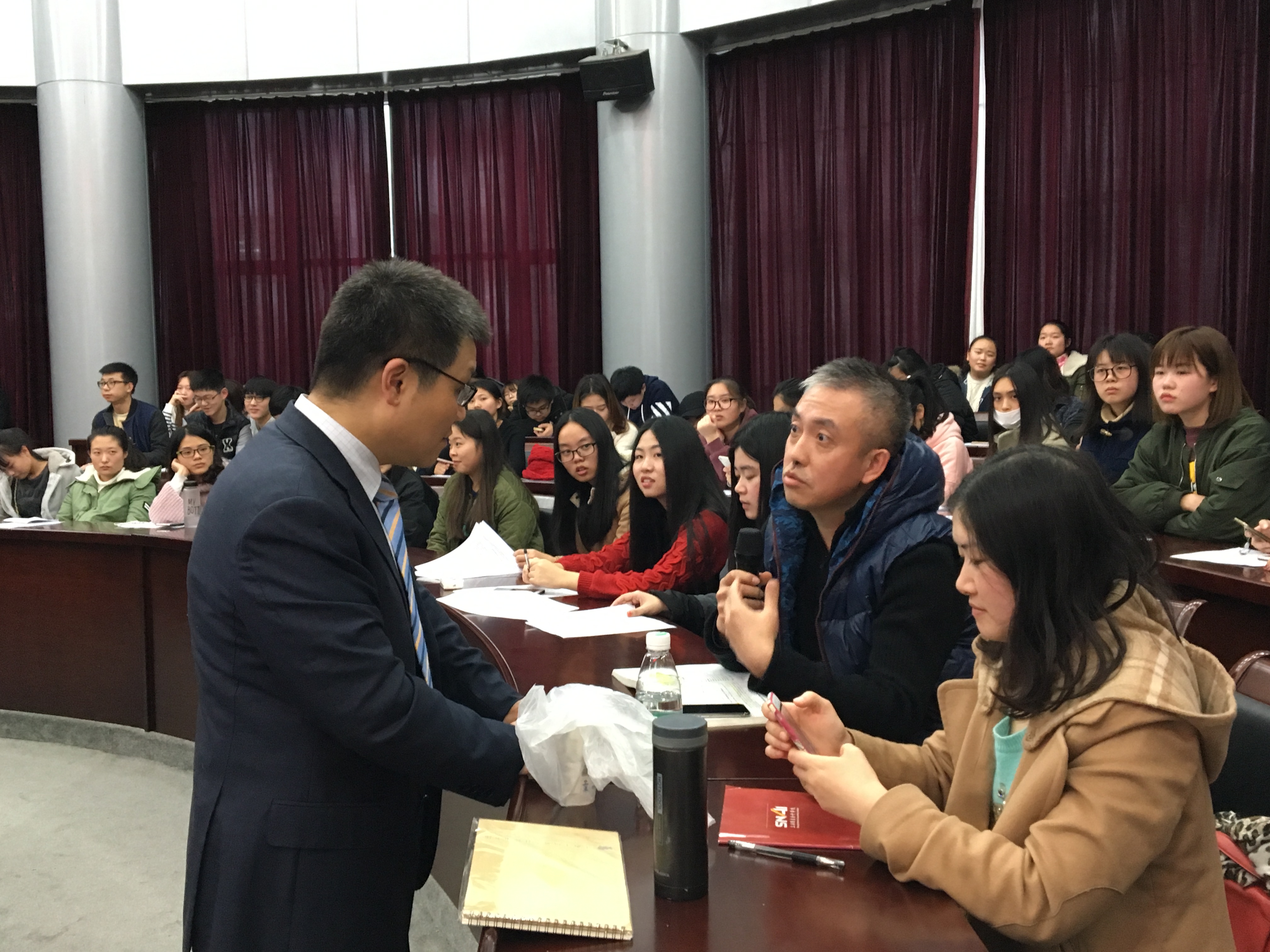 签署仪式后,“经管学堂”第一讲正式开讲。王琦赟先生就主题为“会计师事务所及职业发展路径”,围绕我国注册会计师行业的发展历程、互联网时代的商业模式对会计师事务所的影响、在会计师事务所工作的职业发展路径、会计师事务所的运营和管理、优秀的会计师事务所的特征等方面展开了分享,并鼓励学生要努力构建自己的IP。王先生以他丰富的从业经验、精准的行业把握,及言谈举止间散发着的真诚和对学生的殷殷希望,点燃了学生的学习热情。在提问环节,与会师生纷纷就自己关心的问题向王所长积极请教,气氛热烈。