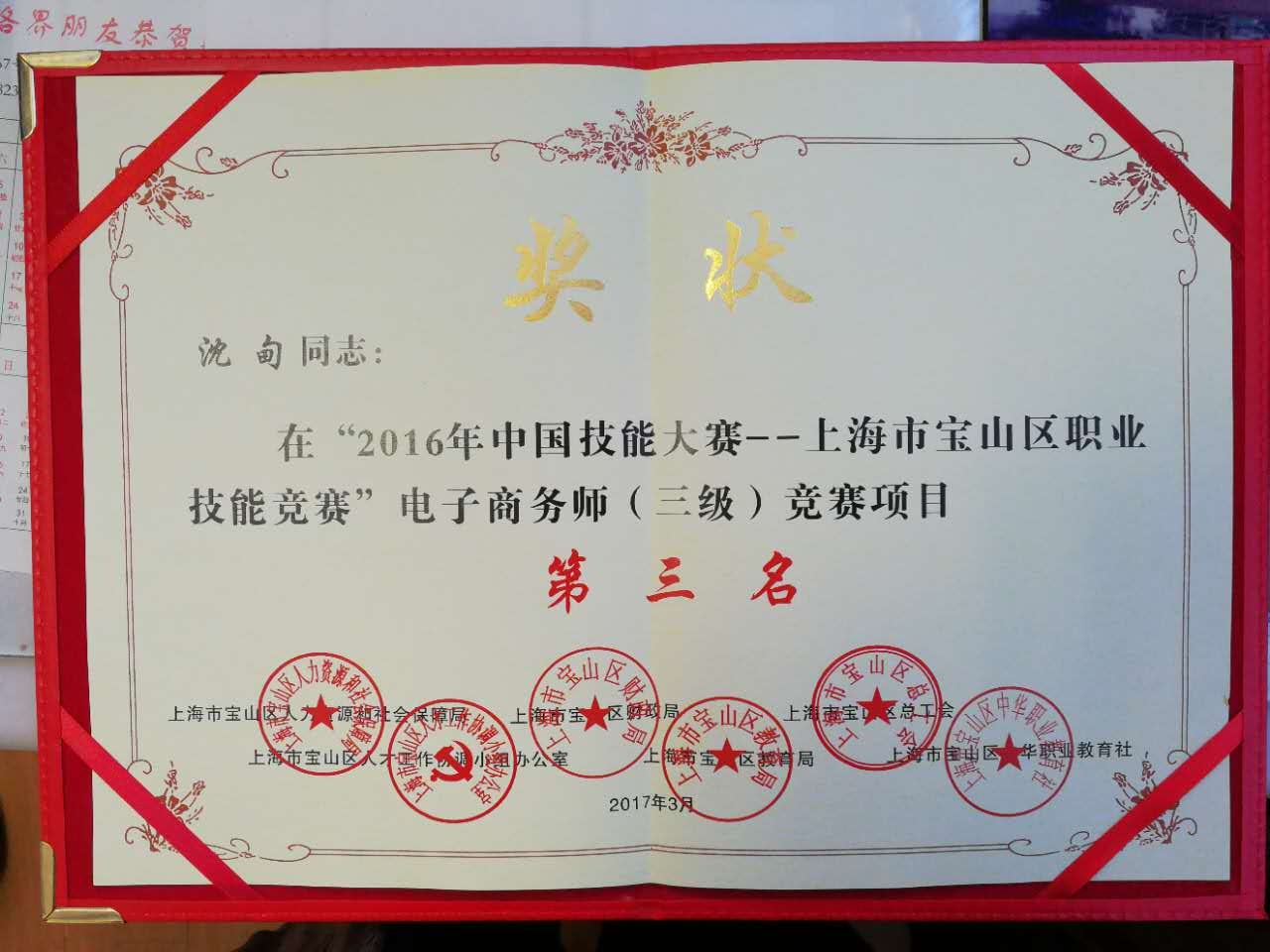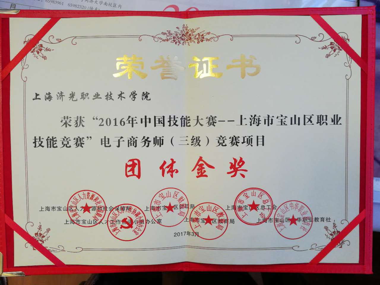 历时五个月,由宝山区人力资源和社会保障局牵头,联合区委组织部、区财政局、区教育局、区总工会等部门共同举办的“2016年中国技能大赛--上海市宝山区职业技能竞赛”电子商务(高级/三级)项目近日公布结果。经管系林俊、李娜、沈甸、宁苗苗组成的教师团队代表济光学院喜获团体金奖。其中,沈甸老师获得电子商务(高级/三级)项目个人第三名的优异名次。全体教师均获得由上海人社局颁发的电子商务(高级)证书。