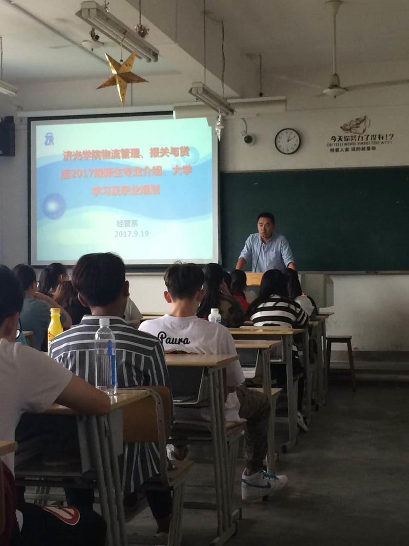 2017年9月15日,我院特聘教授江少文老师给17级物流管理专业的新同学们讲解了对物流和物流管理专业的认识,分享了物流业现状和发展的情况,探讨了如何安排好今后的学习生活。2017年9月19日,我们又对报关和物流专业的新生进行了全面而深刻的专业介绍,并邀请了上海盛世物流集团人力资源部经理周宁先生以及几位我校前毕业生,畅谈物流和报关行业的发展,对于如何度过自己的校园生活,提高自身素质,进行未来的人生规划都进行了详细的介绍。