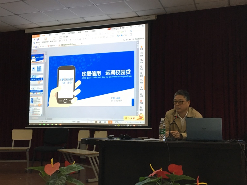 为进一步做好我校大学生网贷风险提示,进一步提升在校学生金融安全知识,防止出现校园诈骗案例,10月30日中午12:00,学院开展以“珍爱信用,远离校园贷”为主题的风险防范知识讲座在第一阶梯教室举行。保卫处副处长金明华,经管系新生辅导员以及经管系17级全体学生参加了本次讲座。