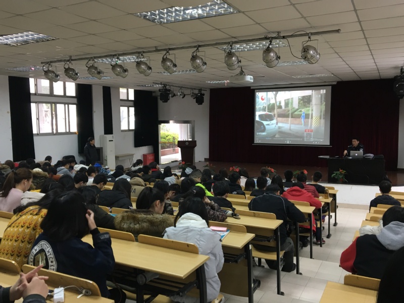 讲座伊始,葛警官由“影响安全行驶的客观因素”入题,通过一系列图片演示,向同学们分析展示了影响安全出行的各种不利因素,同时穿插多个交通视频录像,形象生动地说明了安全出行对于同学们的重要性。在展示视频里的几个交通事故实拍更是带给同学们最为直观的震撼,使在座的同学们回想起自己是否曾存在过如此这般诸多的不良出行习惯。