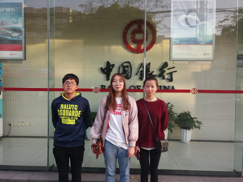 2018年4月10日,经管系吴晖同学等在内的4名同学前往中国银行宝山支行个人金融部进行为期3个月的实践学习活动。