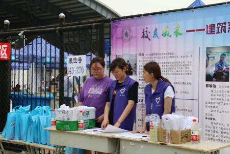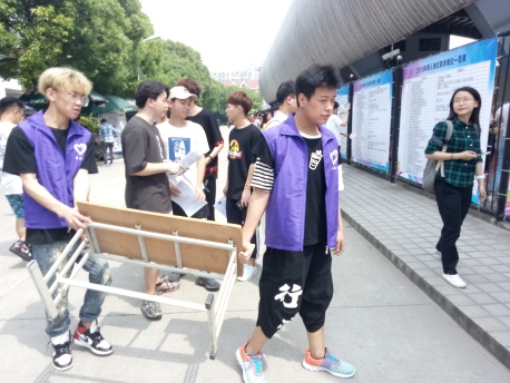 在招聘会现场,来往人流络绎不绝。17报关学子按照杨老师既定工作流程,高效率地完成所有工作。工作中为前来求职的应聘者提供现场咨询,热情地为求职者做出引导,使他们可以又快又准确的找到自己心仪企业的位置,给招聘单位搬桌子、凳子,搬水发水,发纸巾等等。现场招聘工作井然有序离不开我校老师和学生志愿者的通力配合。报关同学们齐心协力,大烈日下,不辞劳累,没有怨言,协助团委完成志愿者工作,此次的就业实习双选会在下午两点圆满结束。