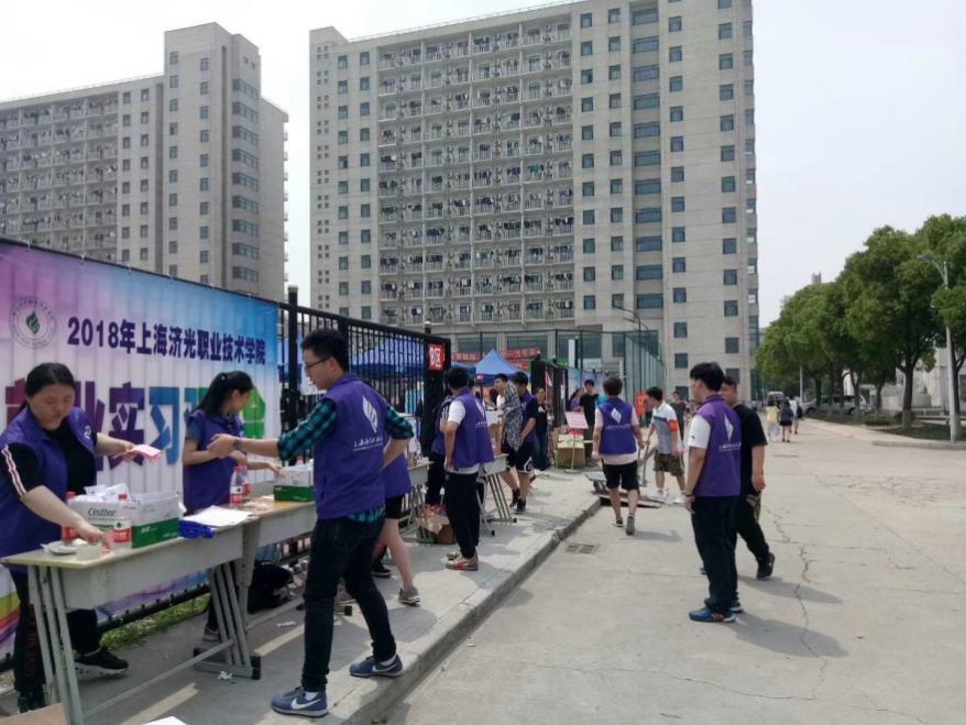 2018年5月17日上午9:30, “2018年上海济光职业技术学院就业实习双选会”在我校风雨操场举行。由我校经管系辅导员梁晓敏老师协助团委组织了17级报关与国际货运1班的全体学生担任志愿者。当天8:00开始,梁晓敏老师安排全体志愿者早早集合到大学生活动中心, 志愿者工作流程由杨伟英老师指挥及安排。