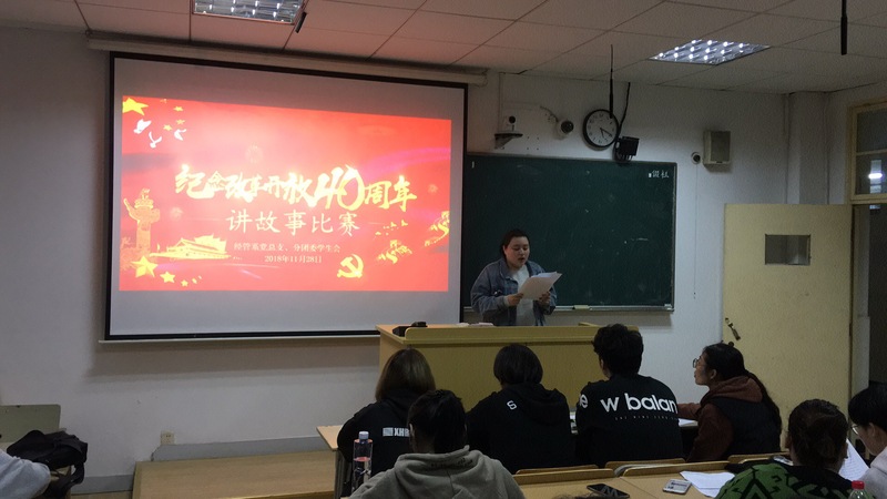 比赛过程中,每位参赛选手都紧扣主题,从容不迫,慷慨激昂。大家都联系自身实际,从身边点滴小事入手,谈身边生活的变化,讲改革开放的故事,字里行间都包含着对改革开放以来生活环境大变化的惊叹,对国家日益强大的欣喜与自豪。不少同学在讲故事时或引经据典,或真情流露,不时就会引起大家的共鸣,在同学们的掌声中,比赛圆满结束。