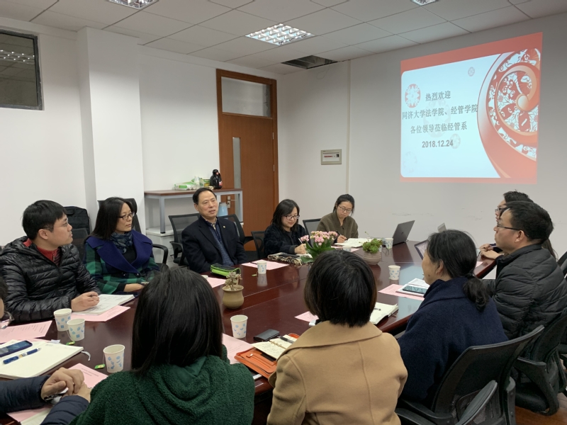 12月24日下午,同济大学法学院党委副书记杨秋华、同济大学经济与管理学院党委副书记陶建兰一行7人来我院,就经管系开展党支部共建活动进行交流。我院党委书记姜富明、院长助理姚桂芳等老师出席了活动。