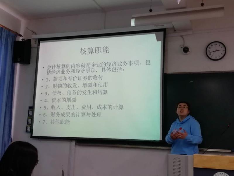陶媛老师以生动形象的案例及通俗易懂的语言为同学们讲解了《基础会计》中会计核算的各项职能,并结合课程思政要求,让学生在专业知识的学习中了解职业规范的重要性。