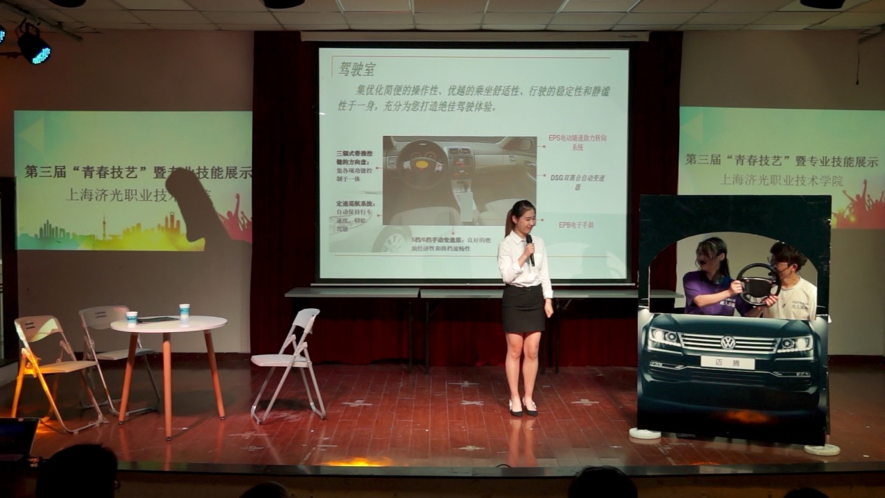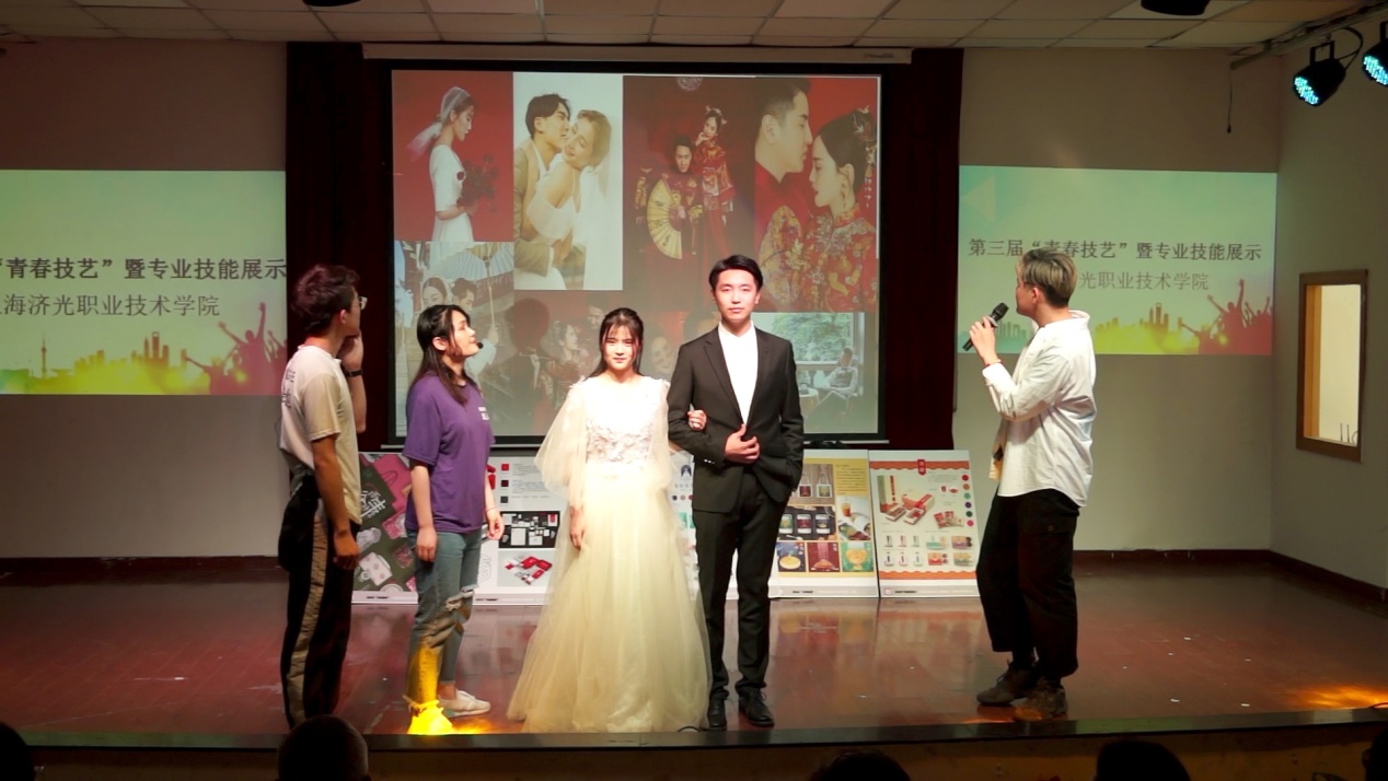 本届“青春技艺”技能展示活动,最大的亮点是采用了舞台剧的表现形式,描述一对同是济光学院毕业的恋人,通过相知、相恋、工作、买车、买房、结婚等不同人生阶段的故事,串联起济光学院6个院系、12个专业的专业技能。整场演出综合运用音乐、舞蹈、情景表演、多媒体展示等舞台手段,节目内容精彩纷呈,为现场师生奉上了一份技艺盛宴,令人耳目一新。而台上台下频繁互动,更是让全场掌声、笑声不断,高潮迭起。