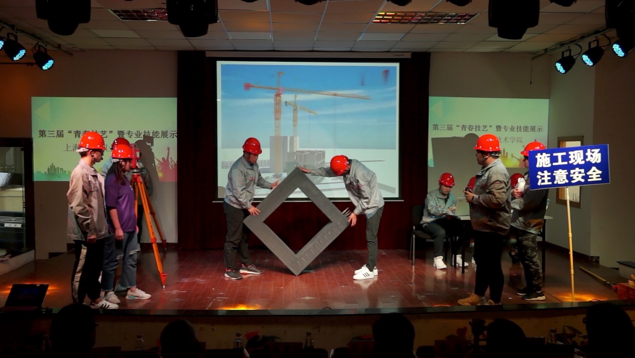 演出在一曲青春、欢快、热烈的舞蹈中拉开序幕。随着剧情的推进,各院系纷纷“秀”出自己的看家本领。护理学院带来《生死时速》展示了心肺复苏、伤口包扎急救处理等医护技能。建工系则情境再现施工放样、吊装装卸、BIM施工场景。场上统一的工装制服、安全帽,体现出高危行业一丝不苟的工匠精神和团队合作精神,给人以启迪和思考。经管系酒店专业为观众带来了如魔术般的花式调酒,调酒师利用不同酒的密度差异,一次性将调酒杯中的酒倒入9个杯子中,呈现出犹如彩虹般绚烂的9种色彩。报关专业呈上的《千里寻它》,则现场进行团队PK。同学们沉稳精准、反应迅速的表现,与台下观众的互动,赢得了在场师生们的阵阵掌声。而机电系《超级马力》把场景切换到某品牌汽车4S店,通过营销人员与客户斗智斗勇,充分展示其扎实的汽车专业知识和营销技巧。建筑系的《交换空间》通过引领潮流的AI室内设计、现场插花等环节表现出人们对美好生活向往的满足,整个过程隐含设计的科学性、技能性。艺术系则通过传统的刺子绣和剪纸的技艺展示、时尚的婚纱摄影,让同学领略到传统技艺与现代文化的碰撞和交融。会计专业《指尖的舞动》,则将点钞技能和舞蹈艺术创造性的融合在一起,完美展现了学生的动手能力及扎实的专业。最后,一首“我的未来不是梦”,寓意着着济光学子对未来的梦想和不懈追求,将本届技能展示活动划上了圆满的句号。