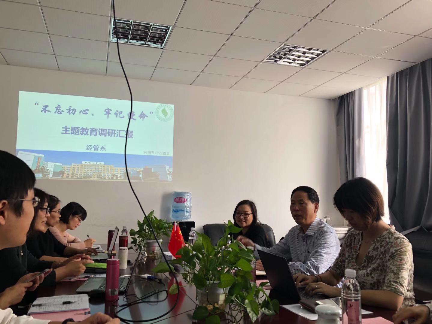 10月12日下午,学院党委书记姜富明、党办主任刘丽,党委组织部委员徐珺烨一行人来到经管系,开展“不忘初心、牢记使命”主题调研活动。本次调研主题有两个方面,一方面是围绕如何打造济光特色“三全育人”共同体,实现学院有机联动;另一方面是如何依托同济大学优质资源,实现小手紧握大手,进一步夯实学院基层党建工作。经管系主任张迺英、党总支书记胡春宝、副系主任李娜,副系主任林俊及教师、辅导员代表共9人参加此次调研活动。