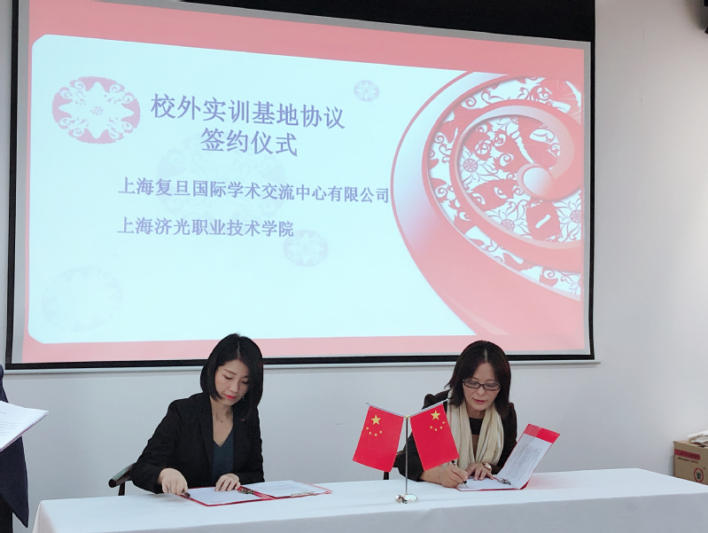 之后,在全场嘉宾共同见证下,与上海吴淞口国际邮轮培训有限公司进行校企合作实践基地揭牌仪式,并与上海众信国际旅行社有限公司、上海复旦国际学术交流中心有限公司、沛华运通国际物流(中国)有限公司和上海灵兮信息科技有限公司四家企业进行校外实训基地协议签约仪式。上海我的菜商贸有限公司为经管系电子商务专业20名贫困学生现场送温暖,开展助学捐赠活动。