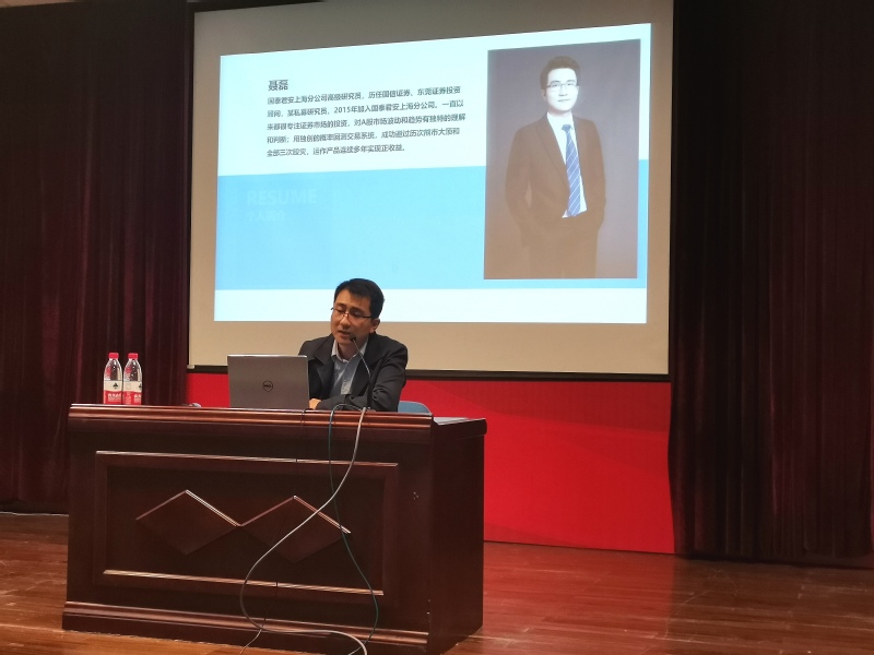 活动中,国泰君安上海分公司投资经理聂磊给同学们带来《证券市场行情分析》和《市场环境及交易策略介绍》两场金融主题讲座。