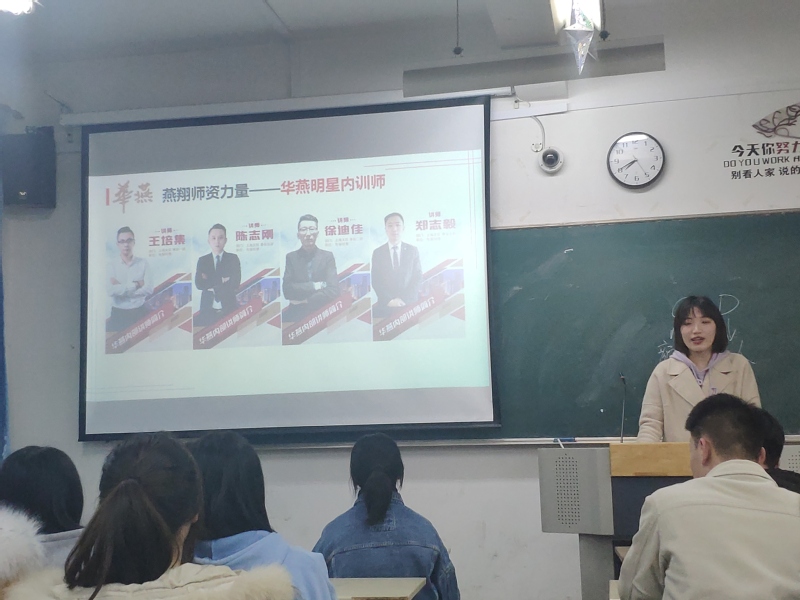 11月28日晚18:00,我校经管系有幸邀请华燕房盟人事主管丁颖为19级报关、工商等专业开设“华燕企业介绍及准营销人职业生涯规划”为主题的讲座。