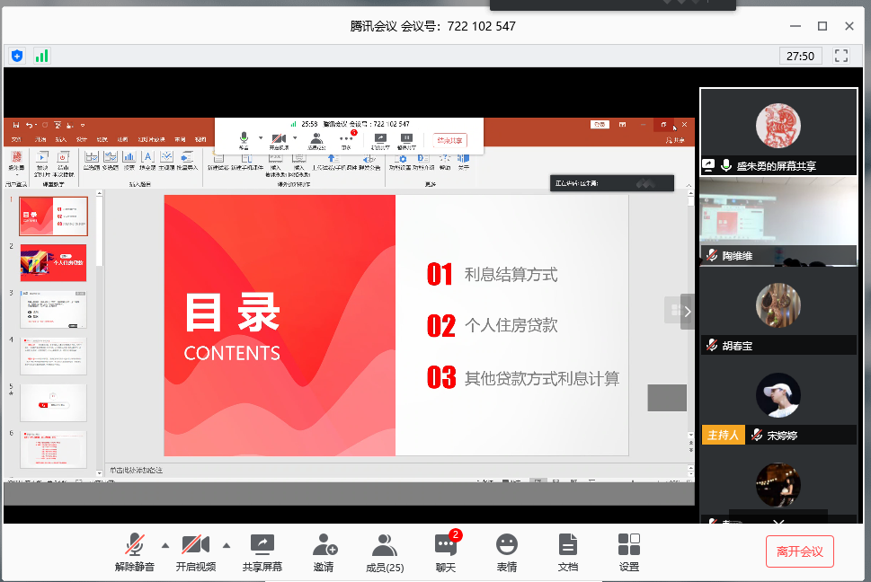 在授课中,盛老师精心设计了个人房屋贷款计算方式这一案例分析,将线上授课、线上讨论、问卷调查、在线作业、在线测试等教学环节环环相扣;他熟练运用多种在线课堂教学软件和技术,将手机操作界面实时分享到雨课堂屏幕分享前端,老师们能清晰了解如何准确搜索和使用手机端的个人房贷计算器,教学视频与PPT的结合也恰到好处;他准备充分,有条不紊,同时结合实际生活开展教学,非常实用且有指导意义,做到了多学科融合,值得大家学习。