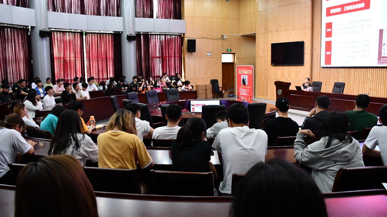 董书记结合自己的专业特长,从我们熟悉无比的交通工具高铁入手,深入浅出地展示了我国铁路的发展历程、现状及其背后的自主技术研发和自主知识产权。中国高铁飞速发展,已成为一张闪亮的“中国名片”,见证了我国改革开放所取得的伟大成就。随后董书记带领大家共同回顾了改革开放历程,通过一个个时间节点、一件件关键事件的罗列和讲述,彰显出我国的制度优势、中国共产党的伟大,和一代代改革者们的付出和探索实践。最后董书记激励在座的青年学子,一代人有一代人的担当,一代人有一代人的使命,希望大家珍惜学习机会,努力钻研专业知识和技能,为中华民族的伟大复兴贡献自己的力量。