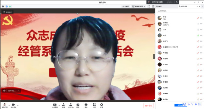 当前,上海疫情防控形势异常严峻,为进一步发挥好疫情期间党员的示范引领和先锋模范带头作用,4月5日晚上,经管系党总支采用腾讯会议软件平台以线上会议形式,组织全体师生党员开展线上“众志成城 同心抗疫”专题组织生活会,此次会议由经管系党总支书记胡春宝主持,全系师生党员共36人参加。