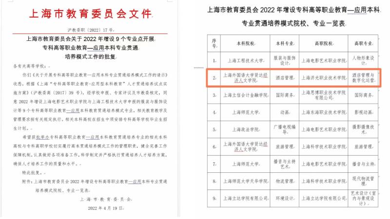 我校经管系在学校总体发展战略引领下和学校领导大力支持下,申报的“酒店管理专业高本贯通”、“数字化商务运营管理专业群”两个项目,近日相继成功获得上海市教委批准建设。