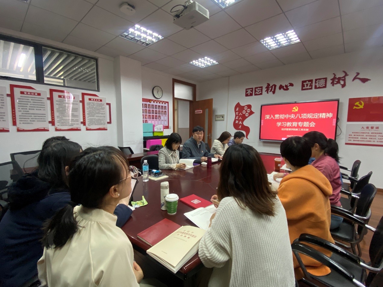 2025年4月14日中午,经济管理学院教工支部组织召开了深入贯彻中央八项规定精神学习教育专题会,会上林俊书记带领大家明确了本次学习的总体要求,我们要认真领会习近平总书记关于加强党的作风建设的重要论述,学习领会和贯彻落实中央八项规定及其实施细则精神。要抓好学习研讨,查摆问题,集中整治。